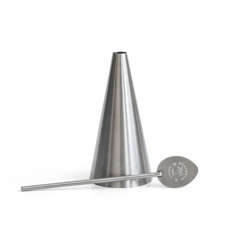 • El kit de dos piezas Navy Grog Cone de Beachbum Berry incluye un molde de cono de metal y una varilla