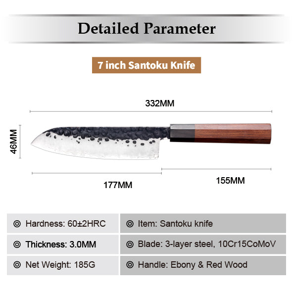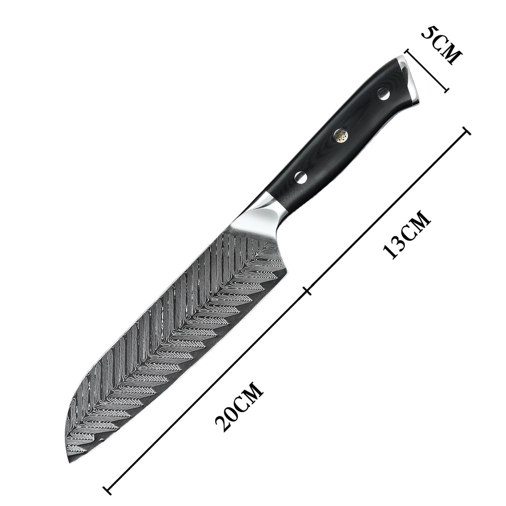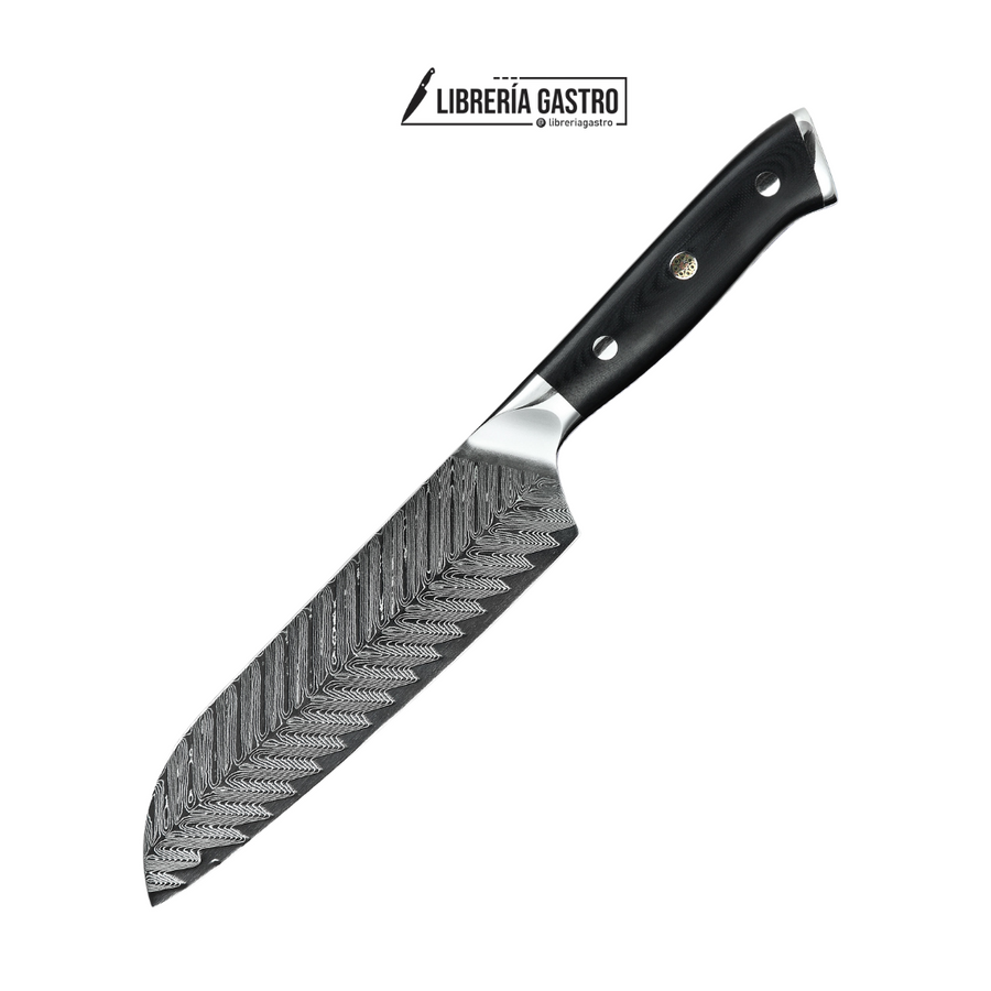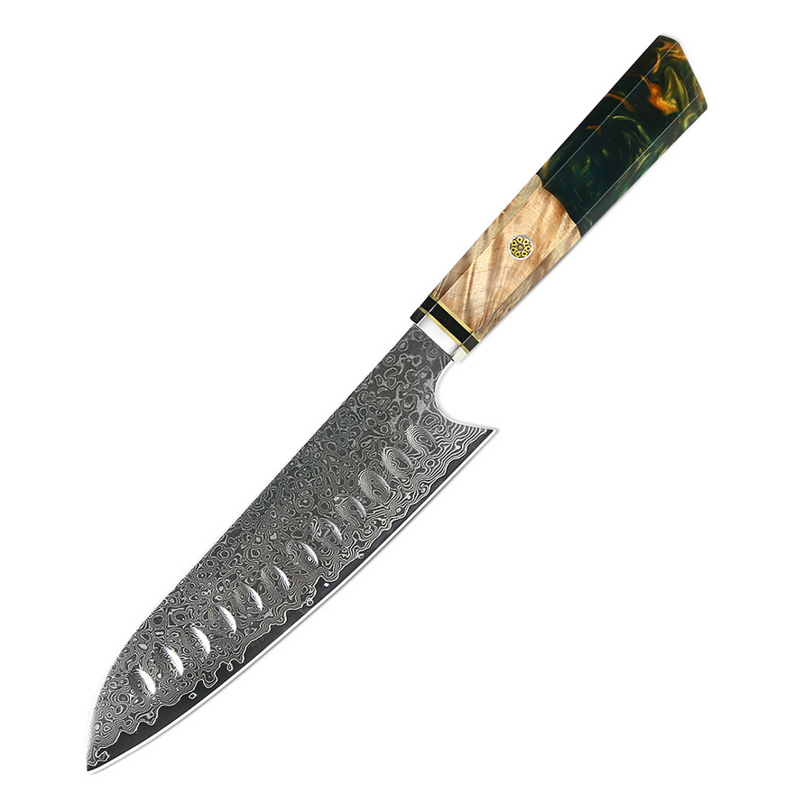 Cuchillo #7 Santoku con mango de resina, acero damasco 67 capas japonés VG10.