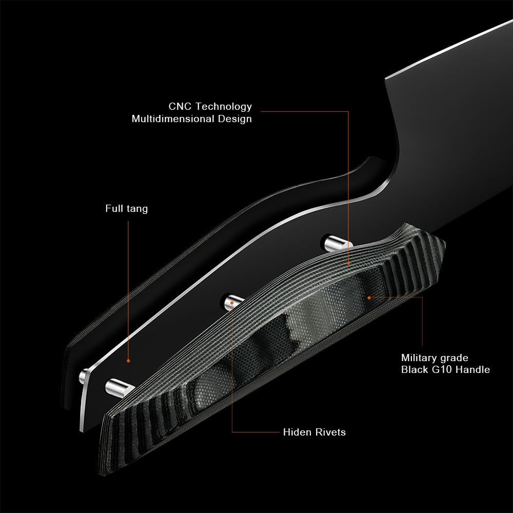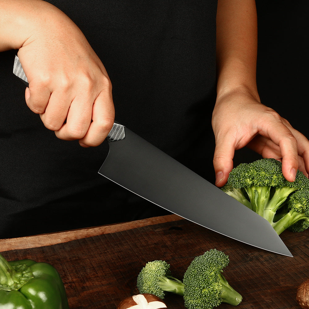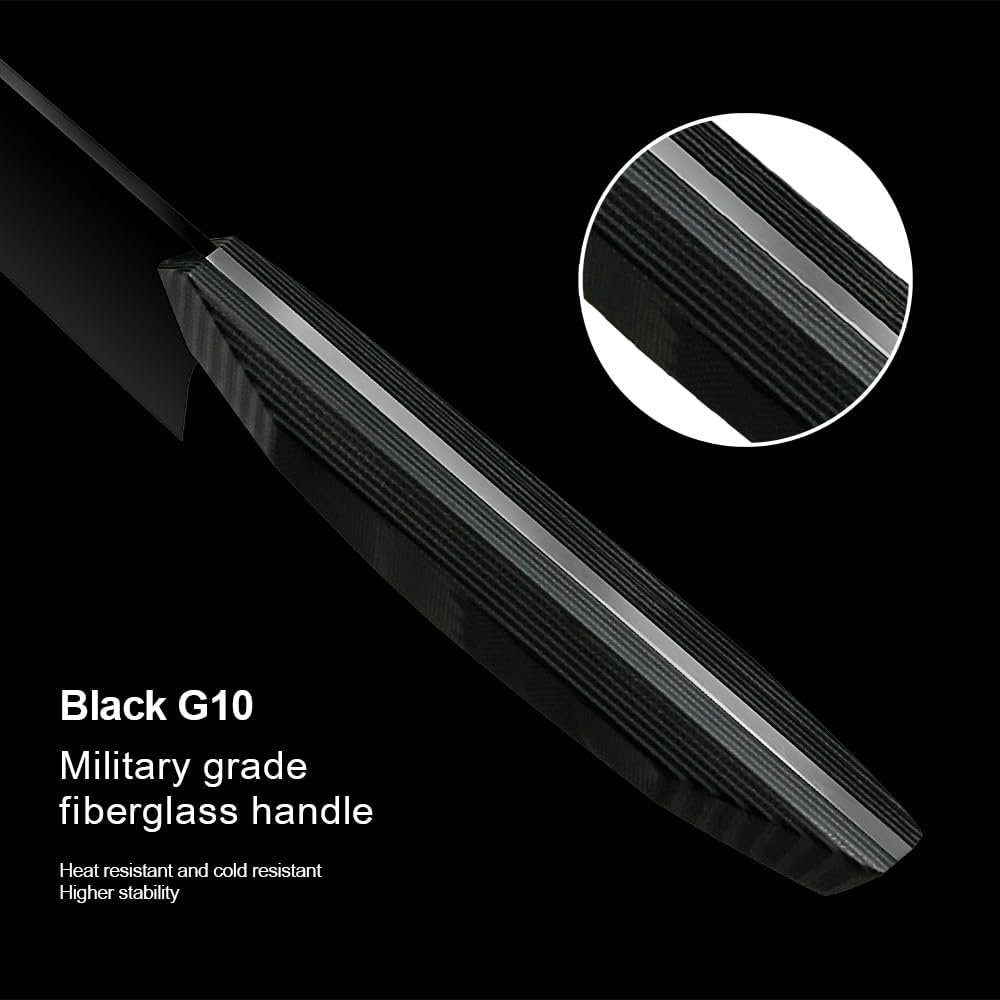 Cuchillo profesional negro mate - Hoja ultra afilada de acero inoxidable con revestimiento de titanio invertido y diseño moderno antideslizante | Precisión para carne, verduras y pescado.