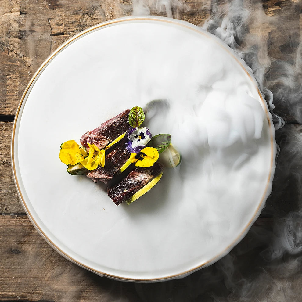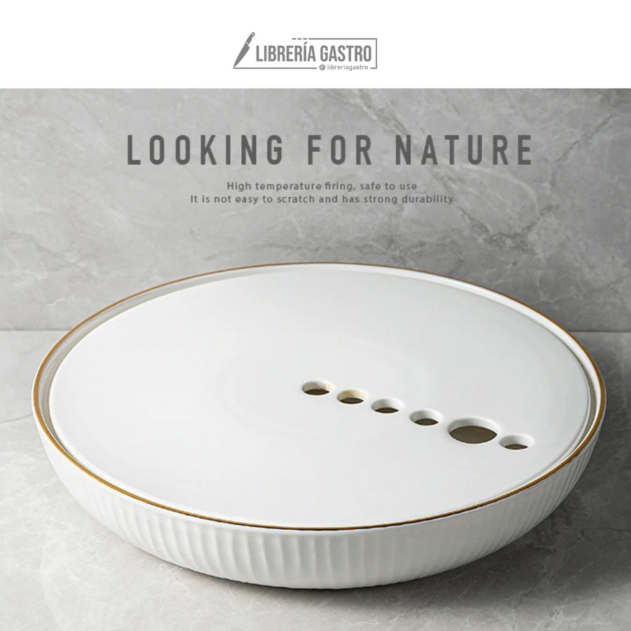 Plato Sushi, con almacenamiento de hielo seco plato para restaurante Hotel plato de conservación fresca bandeja de hielo seco de cerámica para platos de exquisiteces moleculares de mariscos.