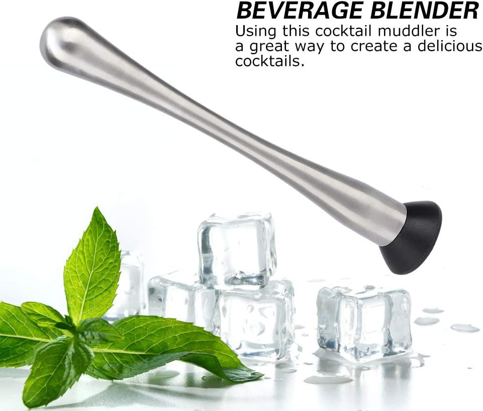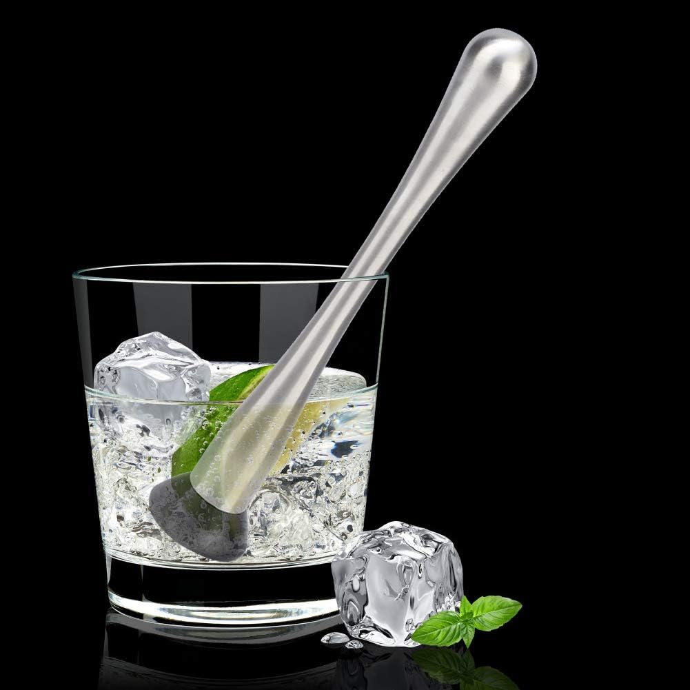- Suministros de bar para cócteles: este triturador de hielo sirve para mezclar hojas de menta, triturar frutas cítricas, hierbas y especias y otros cócteles. Apto para bar, restaurante y uso familiar. El mango está cepillado y es cómodo de sostener.