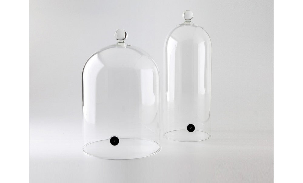 Campana de borosilicato con válvula de silicona alimentaria (ref. 10/0019). Puede contener en su interior vasos de tipo Tumbler, Collins y Old Fashioned.