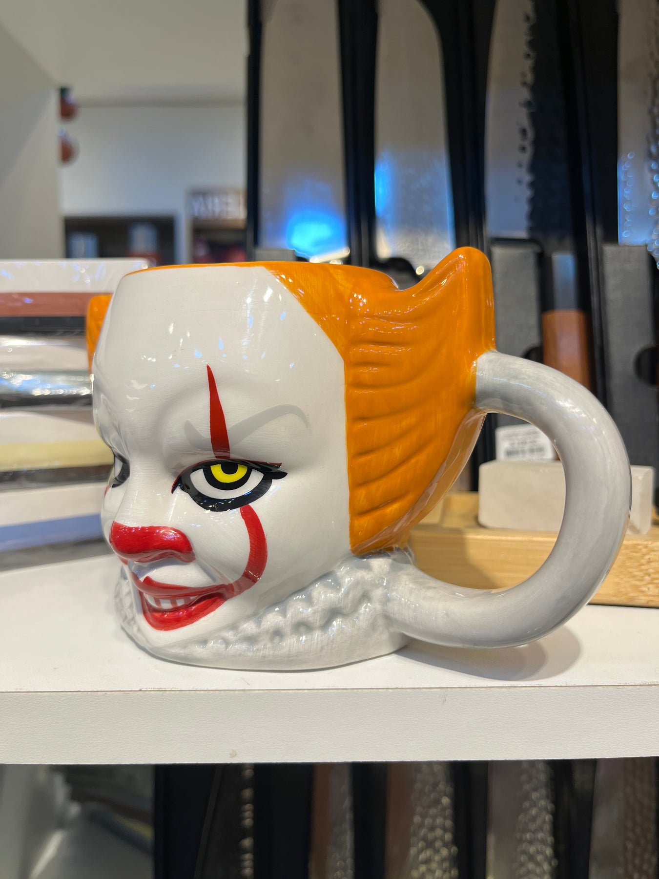 Taza de cerámica 3D con diseño del payaso Pennywise que aparece en la película IT.